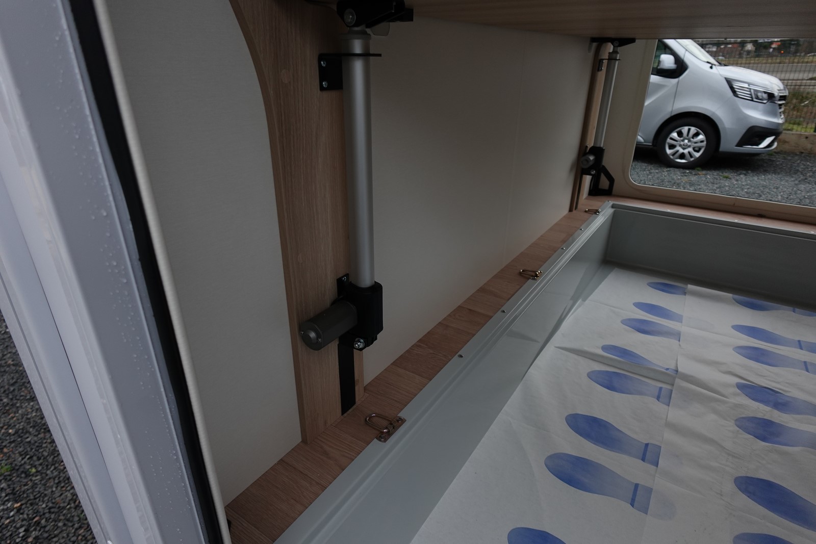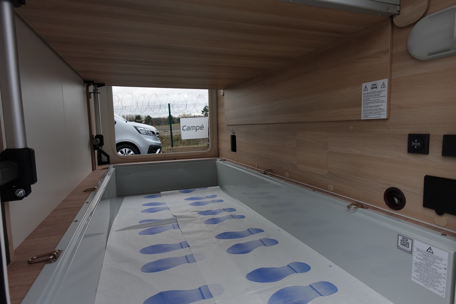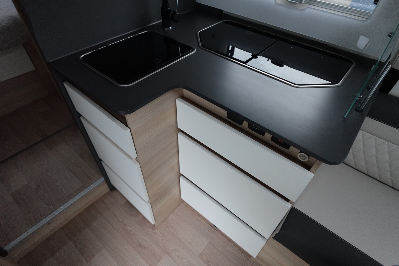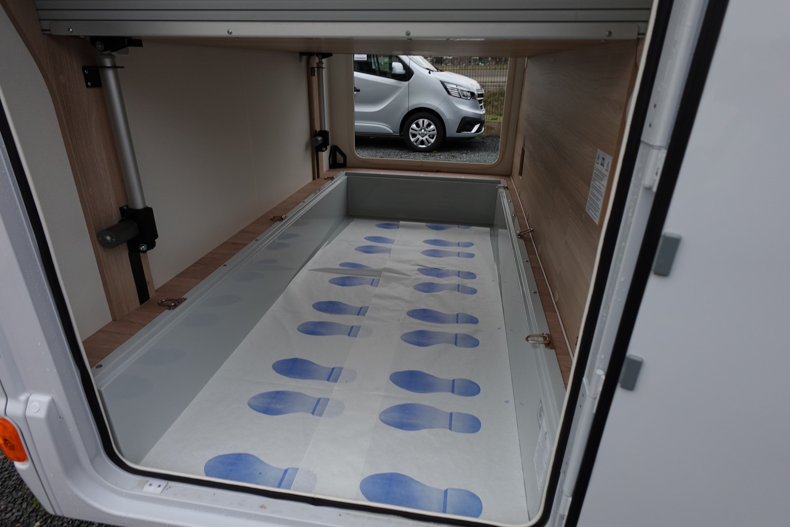 Intégral comprenant un salon avant panoramique avec banquettes face/face, une douche indépendante de l’espace WC / lavabo, un lit central réglable en hauteur, un lit de pavillon 2 places et une cuisine en L avec de nombreux rangements.