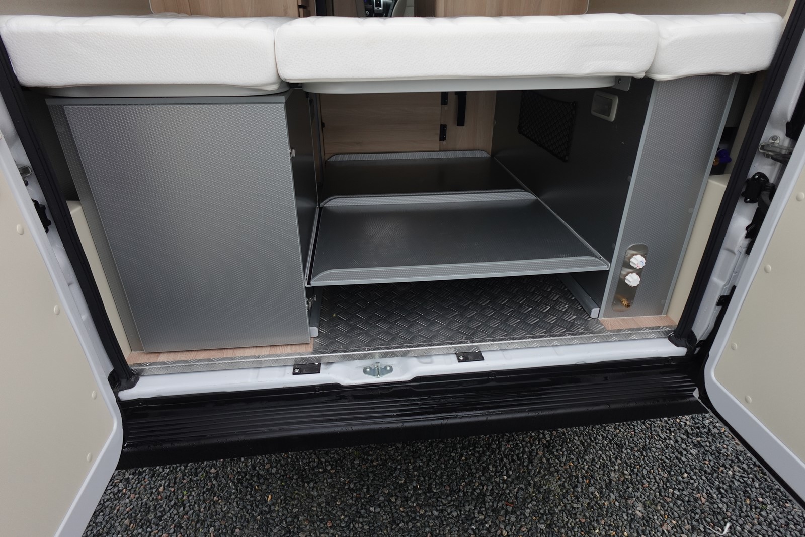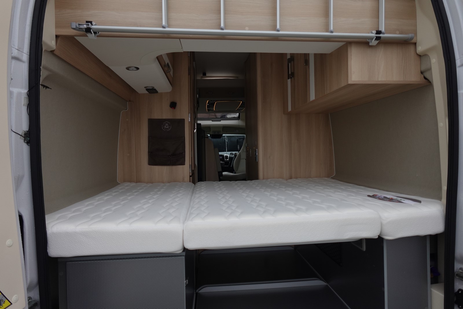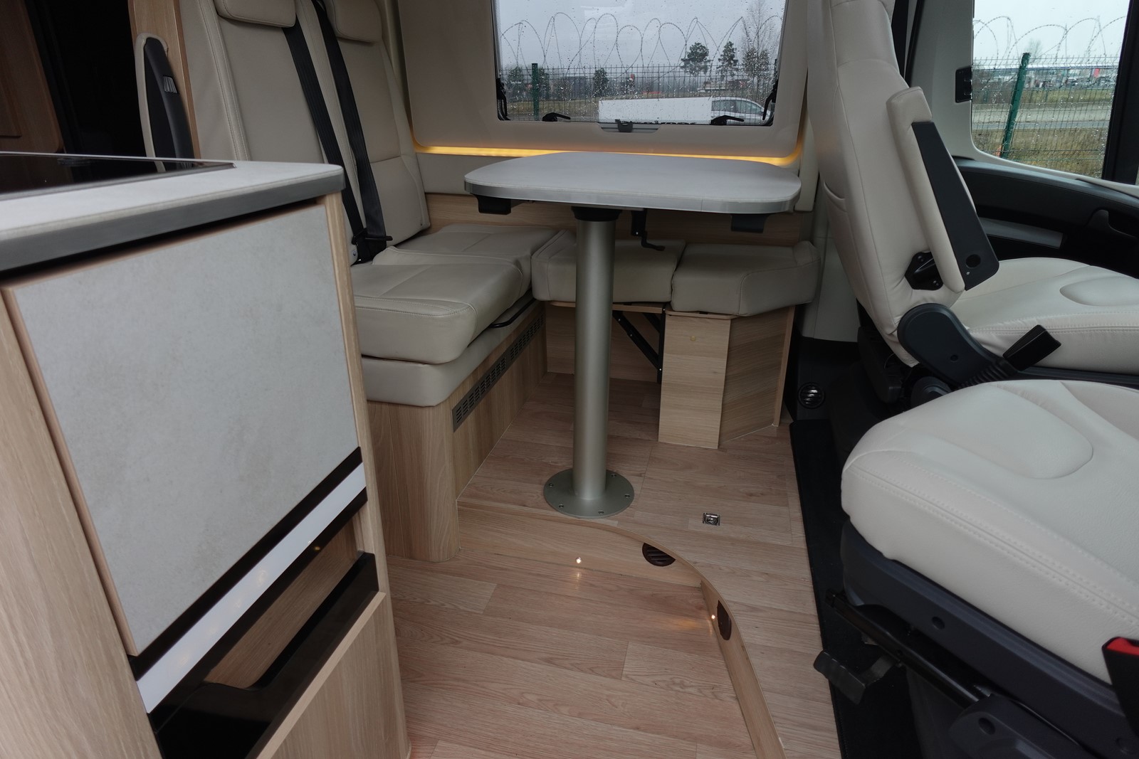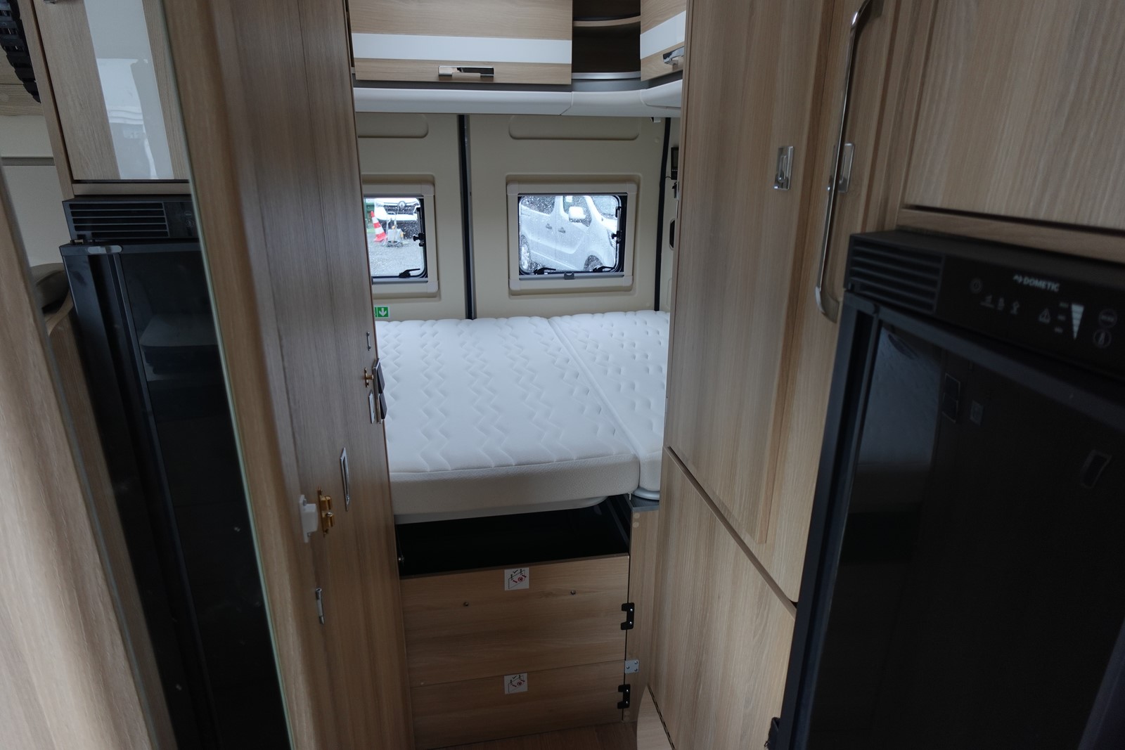 L’alternative au camping-car, le fourgon sans compromis comprenant un grand salon avant panoramique, un grand réfrigérateur, une cuisine avec de nombreux rangements, un lit transversal arrière et un lit de pavillon électrique 2 places. Le tout en série Limited sur-équipée.