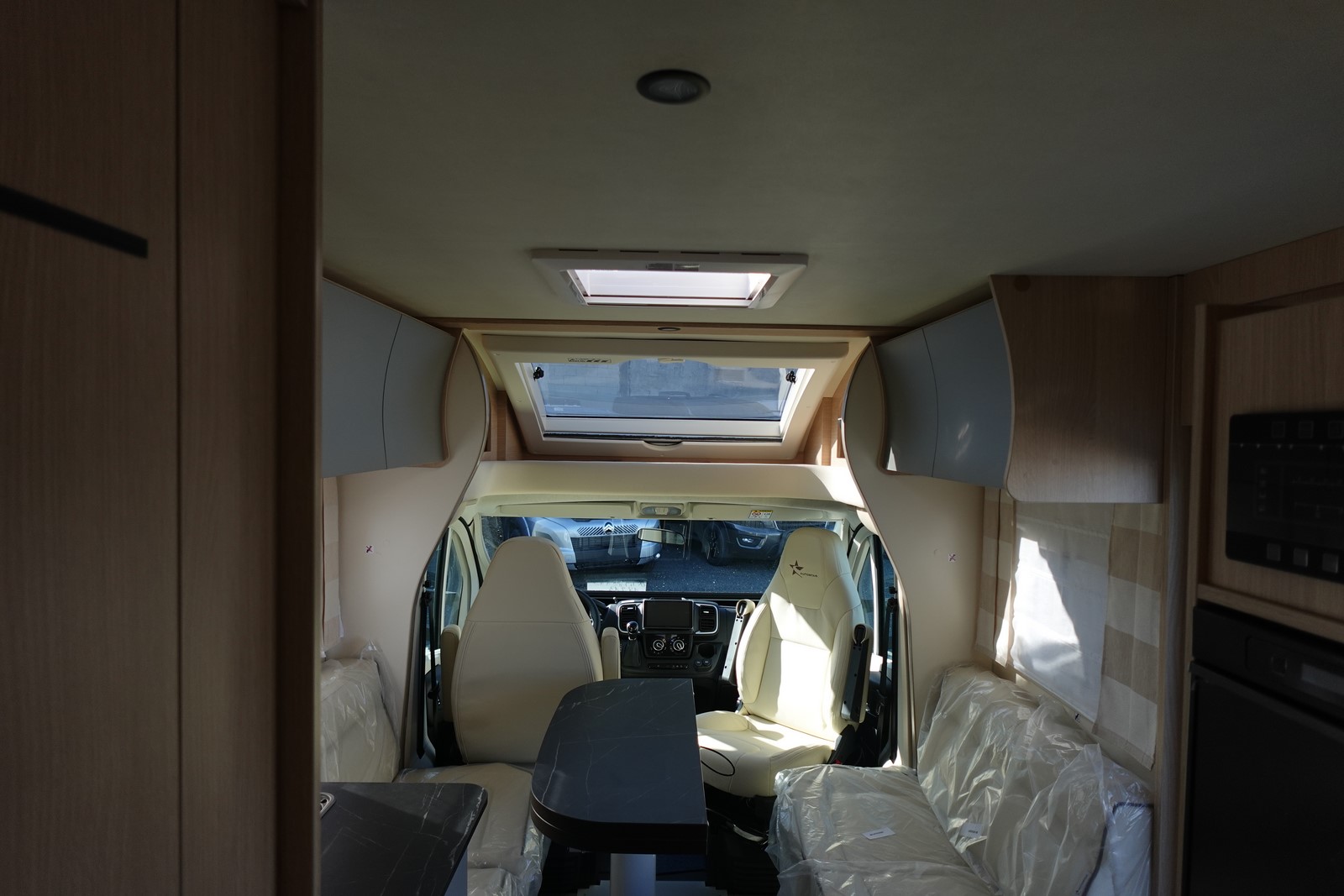 Un profilé aux couleurs "tendance" avec double plancher de plain-pied sans lit pavillon. Le nouveau profilé PRIVILEGE P740LC, avec un lit central à l'arrière, est conçu avec un double plancher de plain-pied, un très beau salon et une douche spacieuse et cossue. Au niveau technique, ce camping-car a été étudié dans les moindres détails pour des camping-caristes avertis. La sensation de volume et de luminosité y est prépondérante grâce à la toute nouvelle ambiance mobilier.