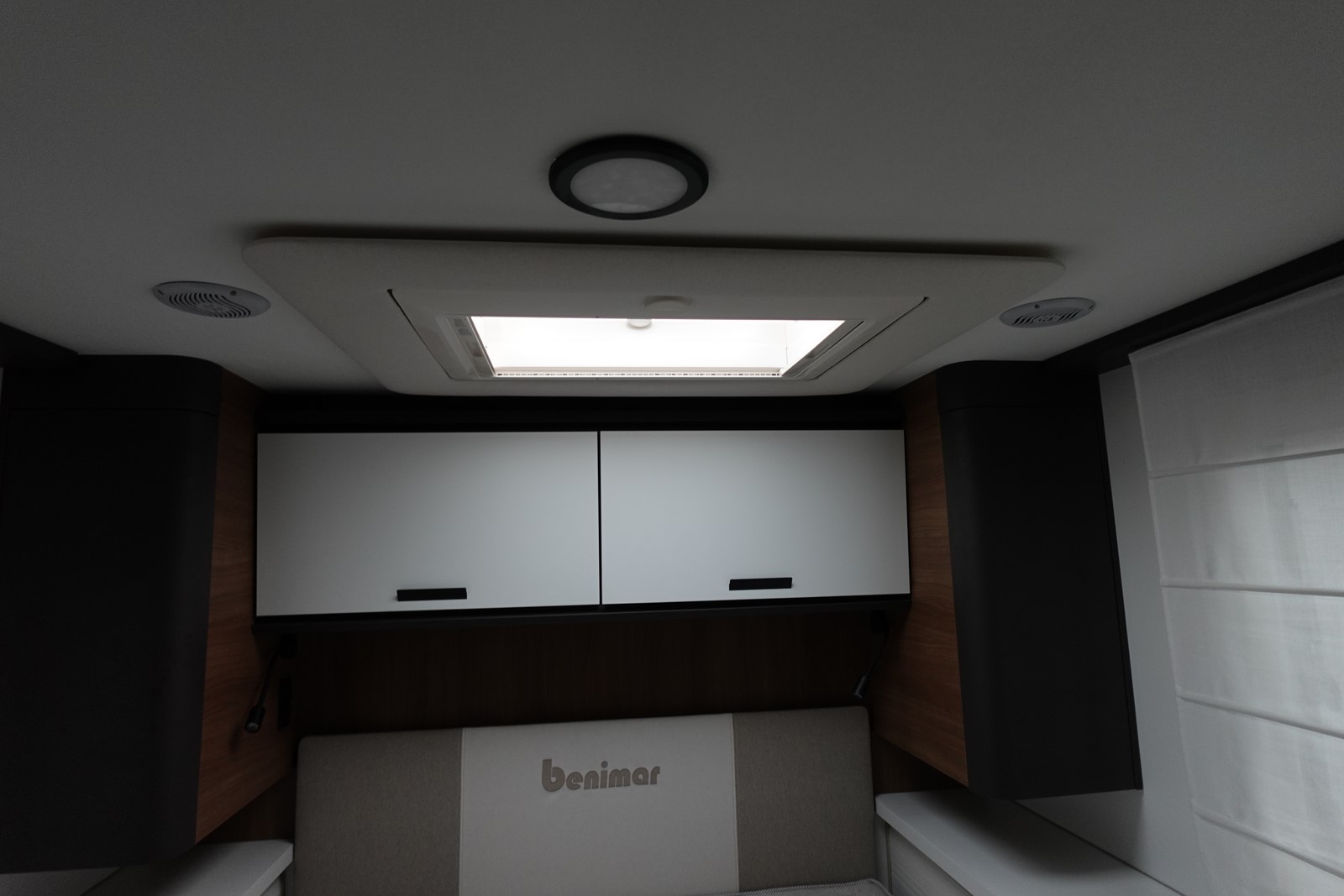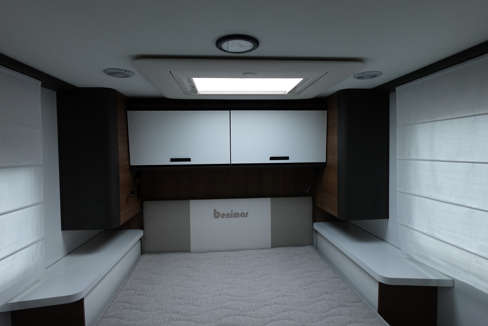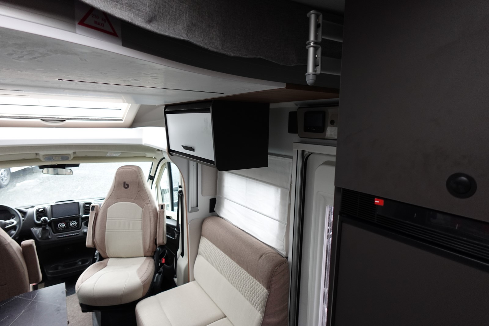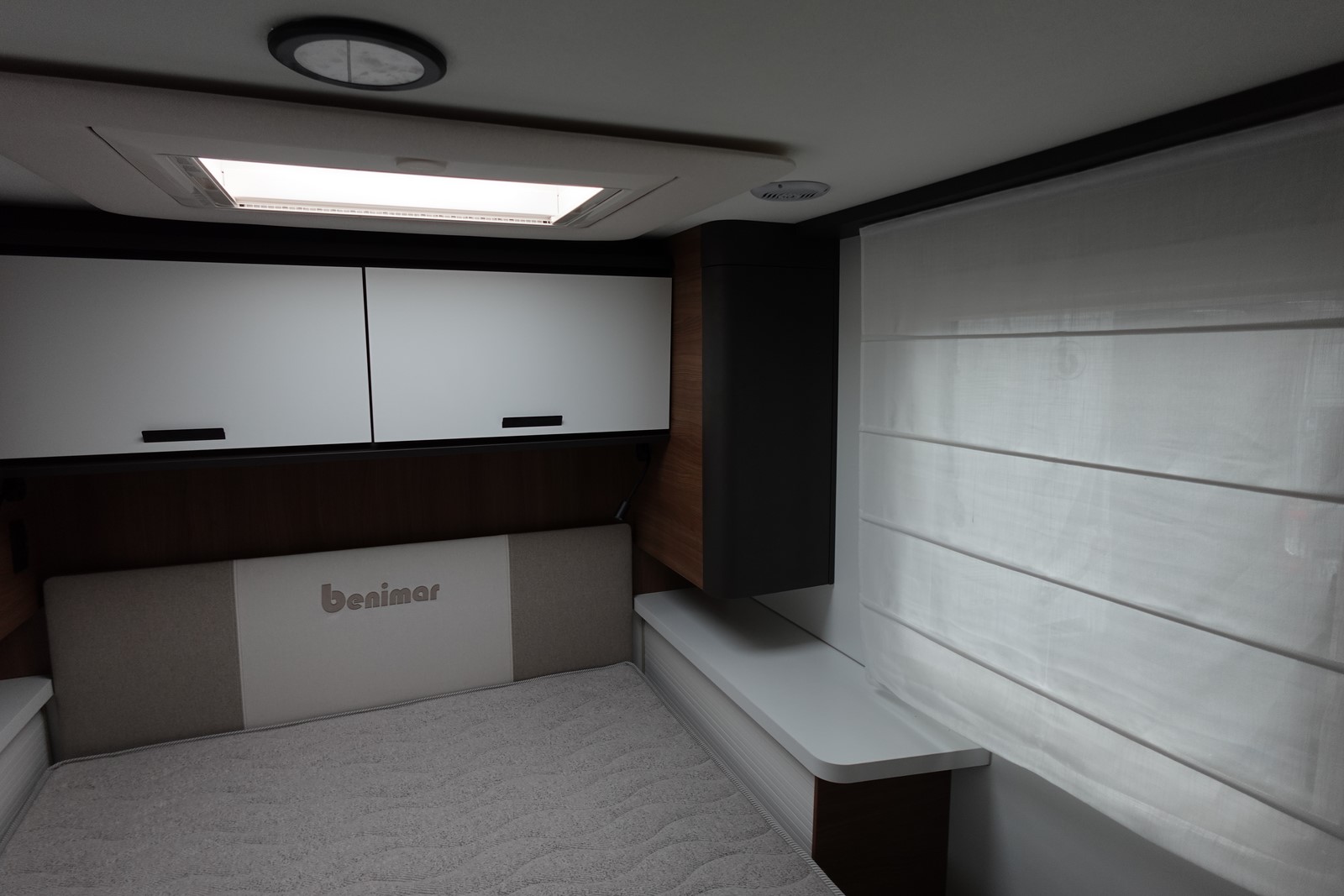 Magnifique profilé avec un lit central réglable en hauteur sur soute garage, une douche indépendante de l’espace WC, une cuisine avec de nombreux rangements, un lit de pavillon et un grand salon panoramique avec banquettes face/face.