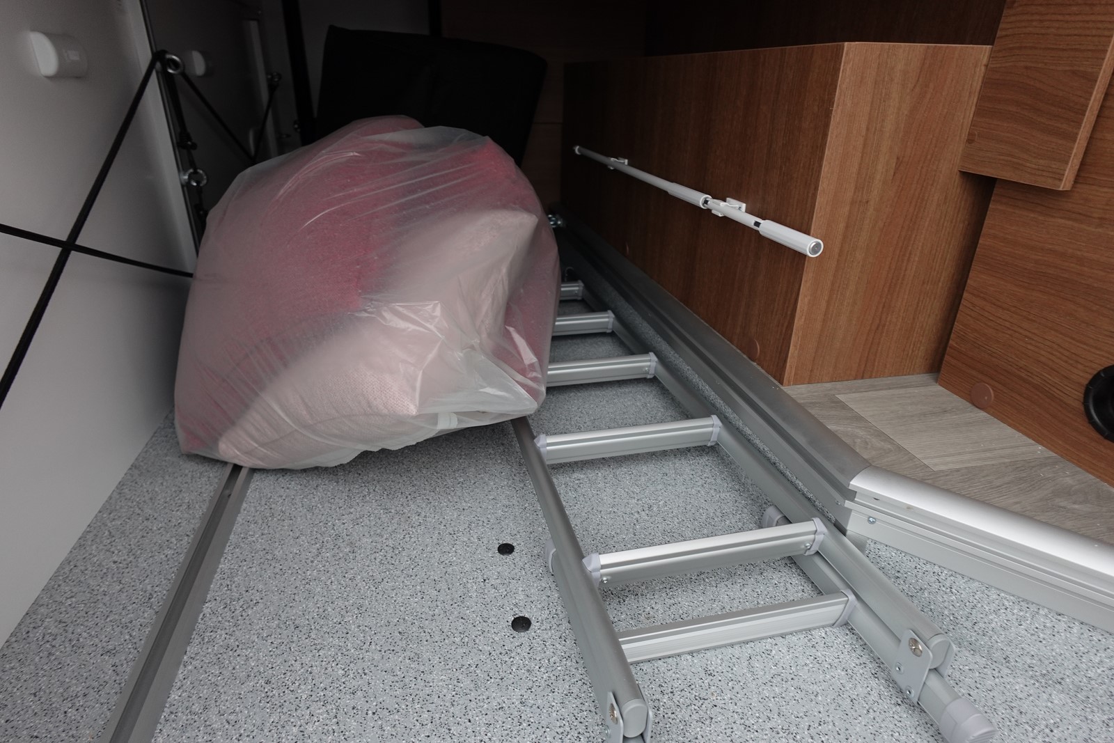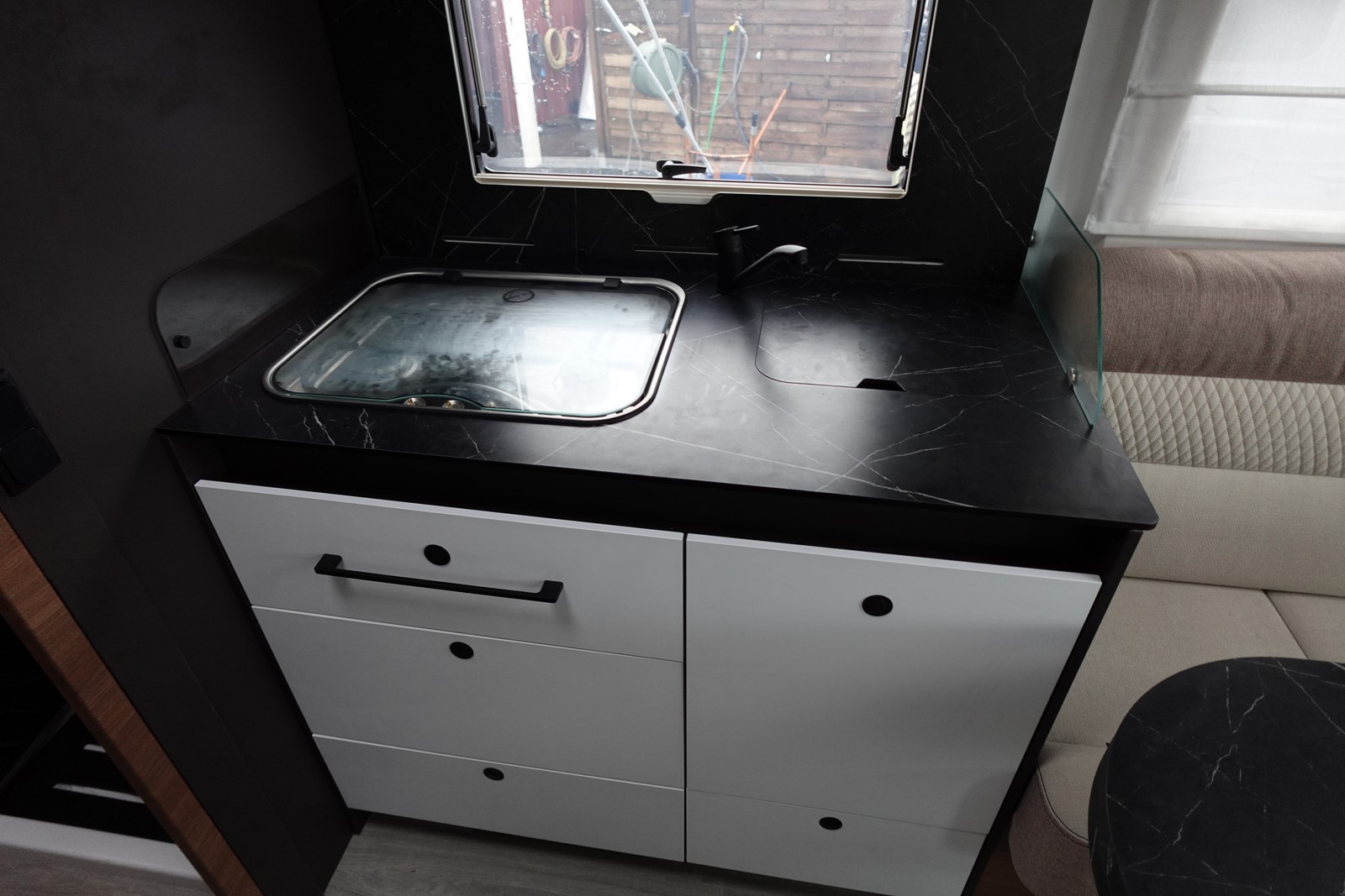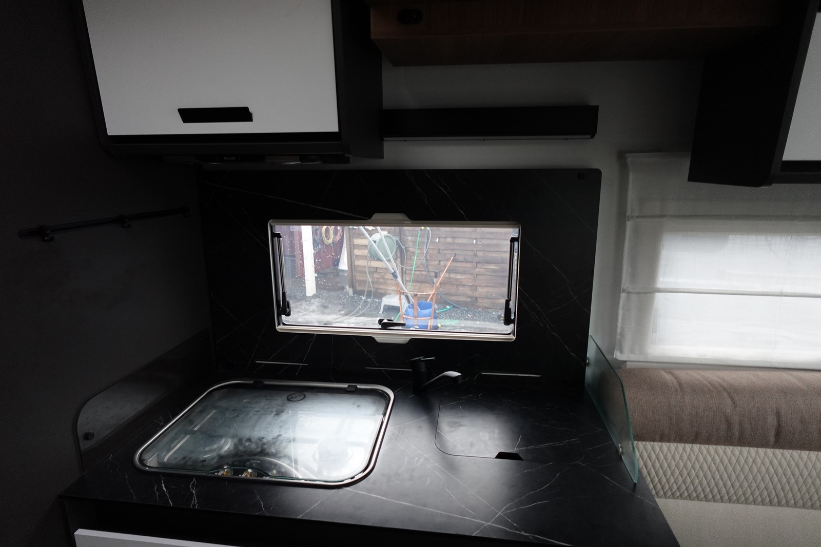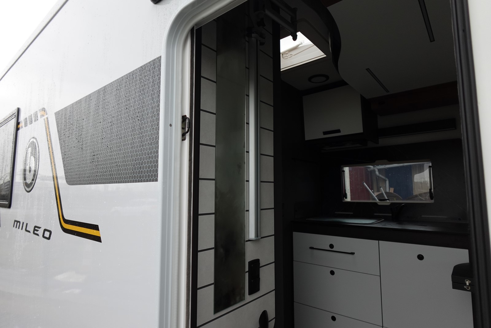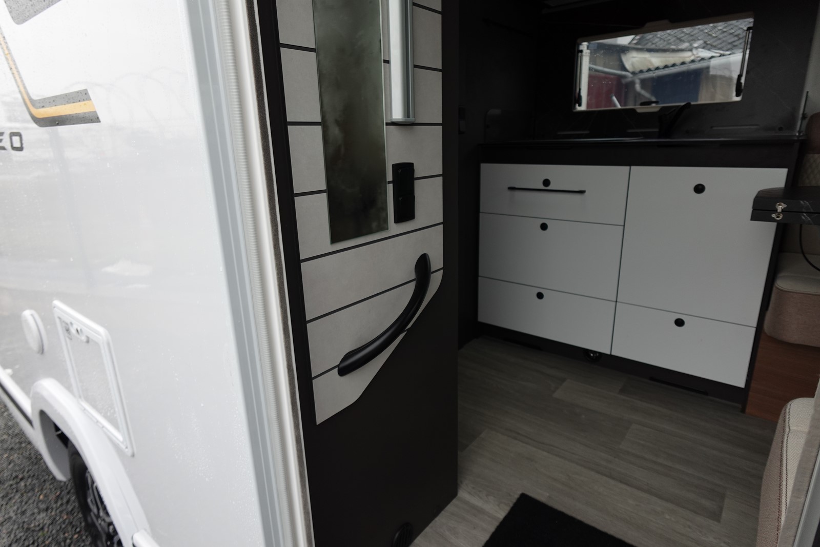 Magnifique profilé avec un lit central réglable en hauteur sur soute garage, une douche indépendante de l’espace WC, une cuisine avec de nombreux rangements, un lit de pavillon et un grand salon panoramique avec banquettes face/face.