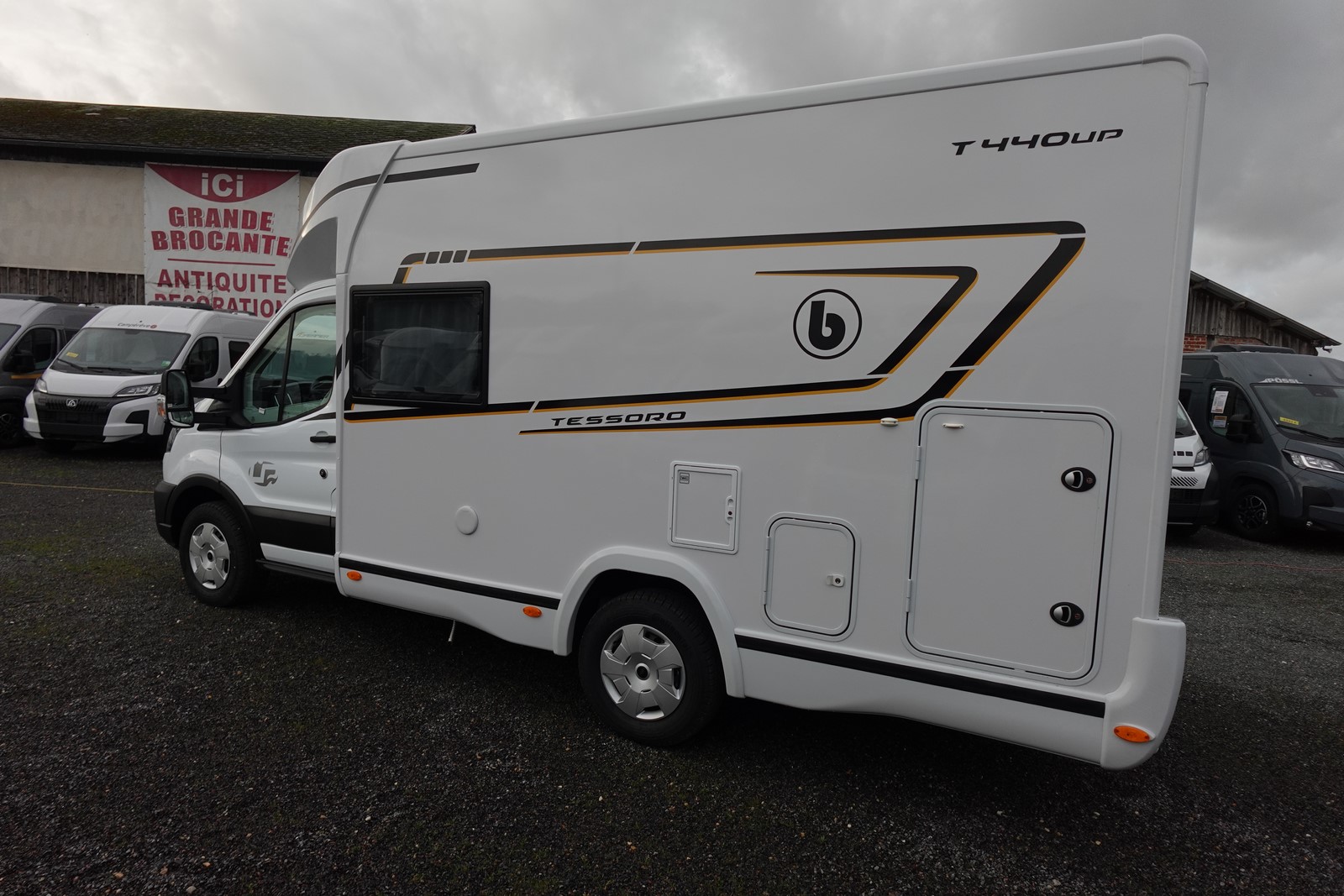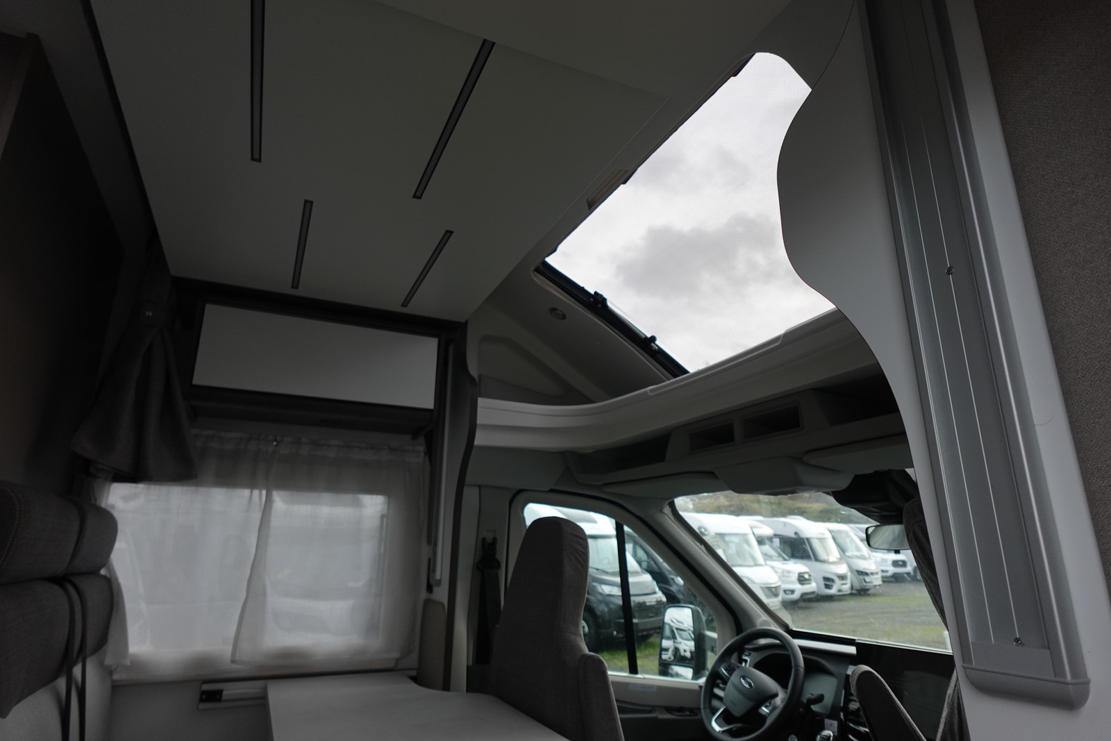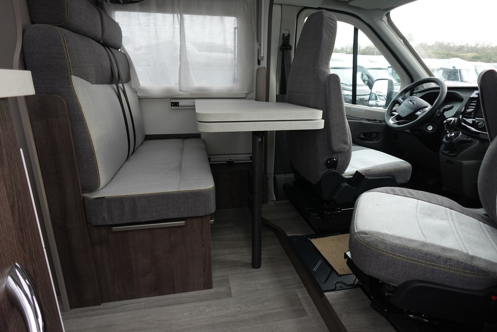 Profilé déjà tout équipé et prêt à partir comprenant un lit transversal arrière réglable en hauteur et sur soute garage, une salle d’eau avec douche séparée, une cuisine avec de nombreux rangements, un salon avant panoramique transformable en couchage et un lit de pavillon 1 place.