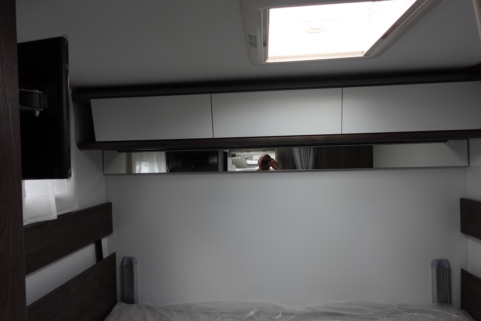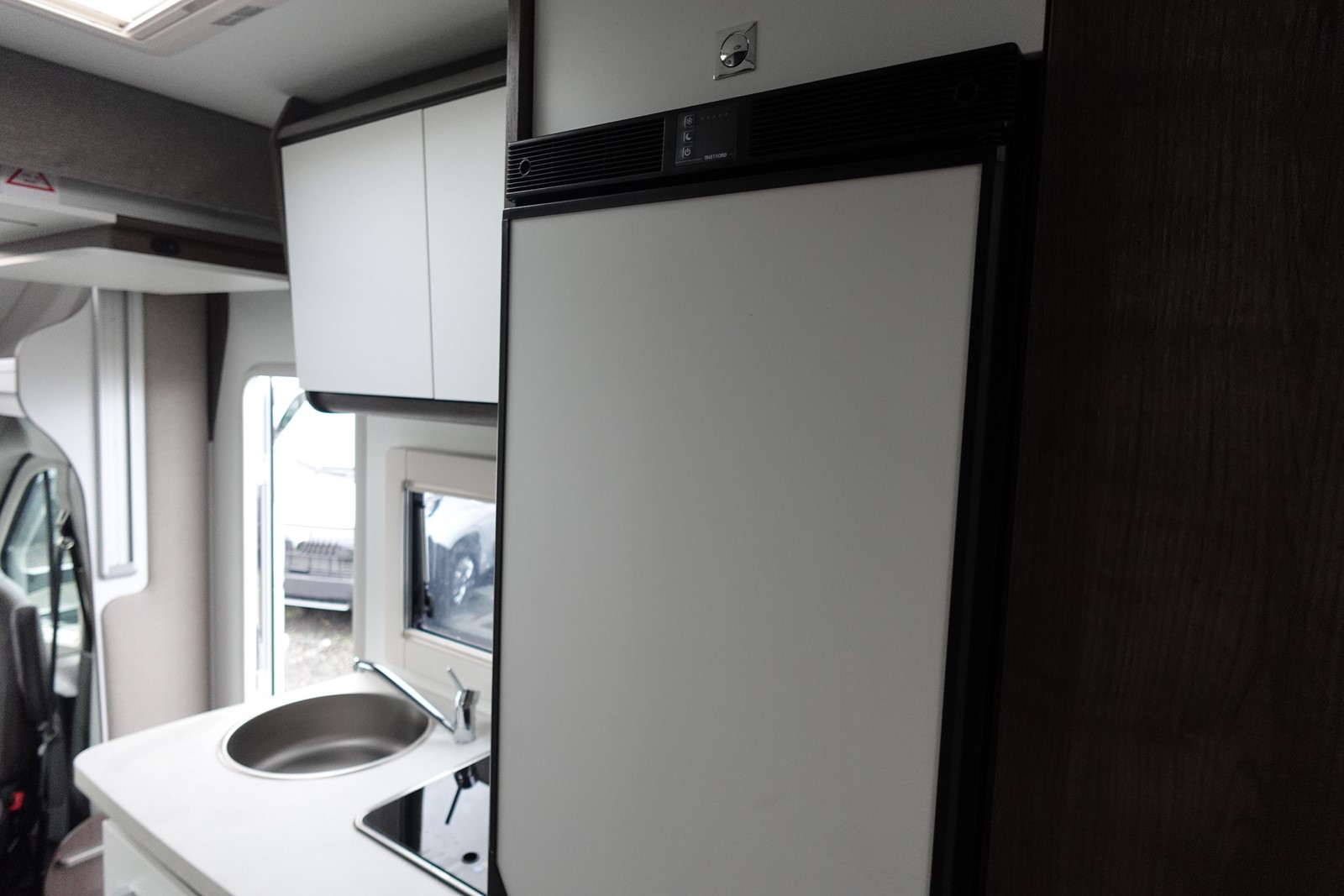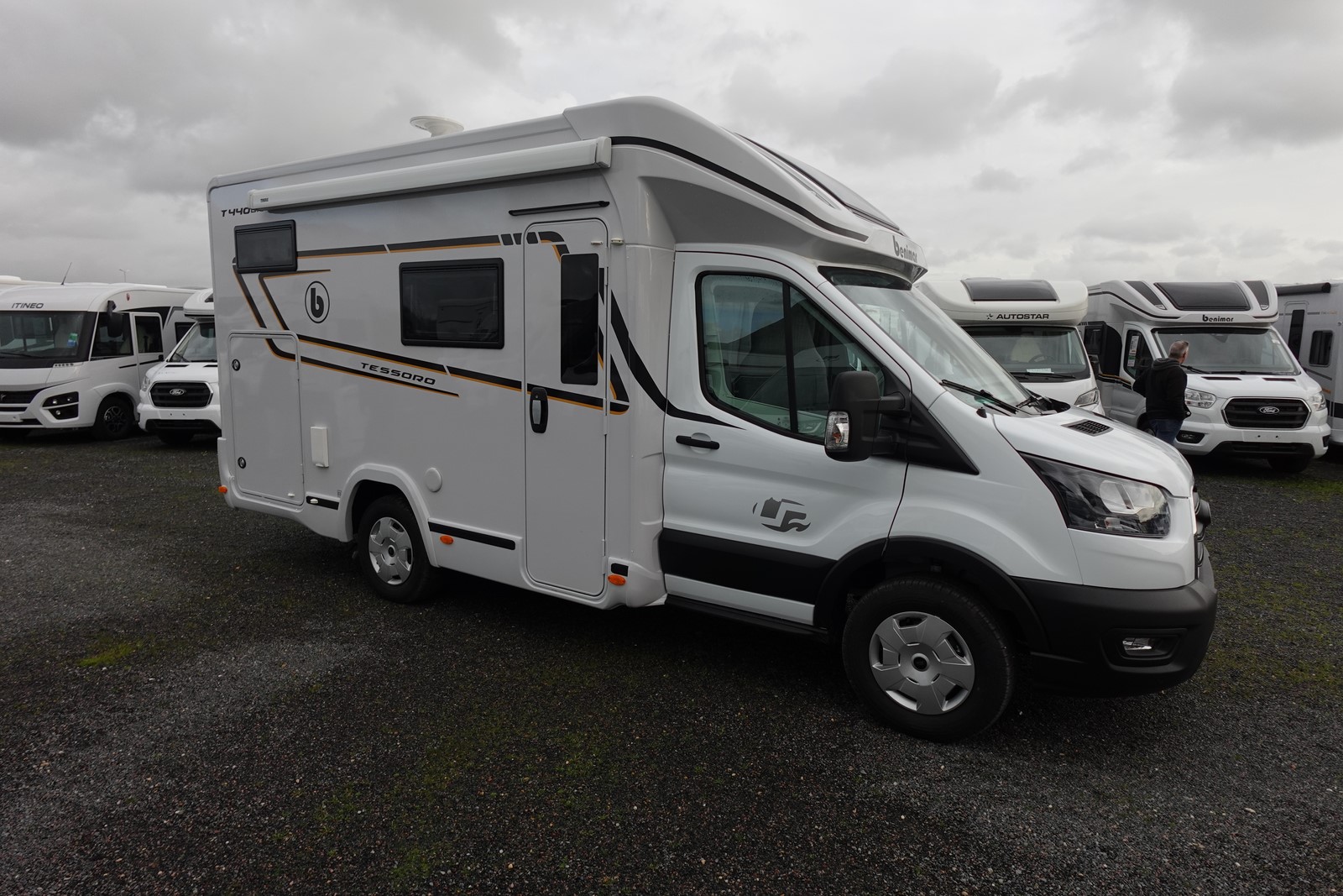 Profilé déjà tout équipé et prêt à partir comprenant un lit transversal arrière réglable en hauteur et sur soute garage, une salle d’eau avec douche séparée, une cuisine avec de nombreux rangements, un salon avant panoramique transformable en couchage et un lit de pavillon 1 place.