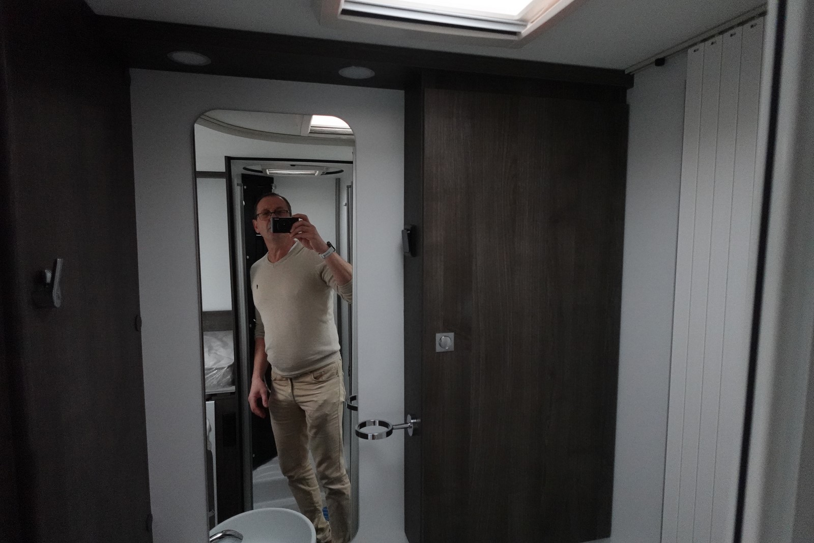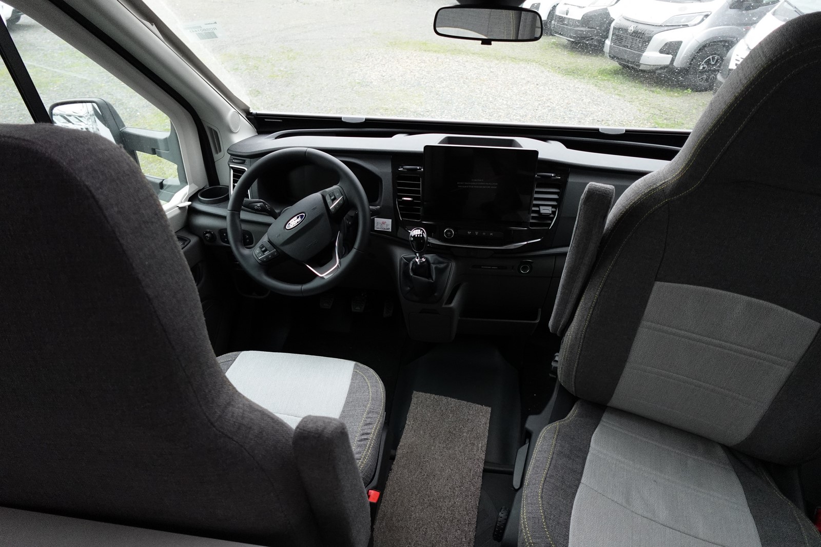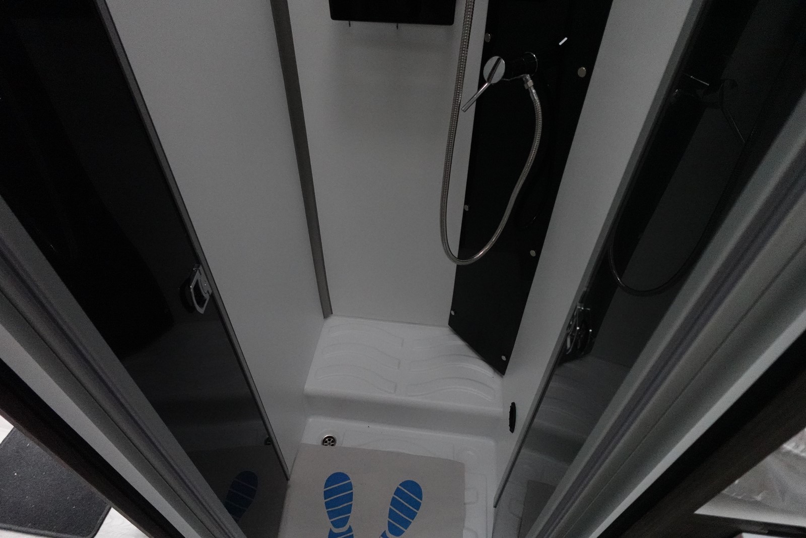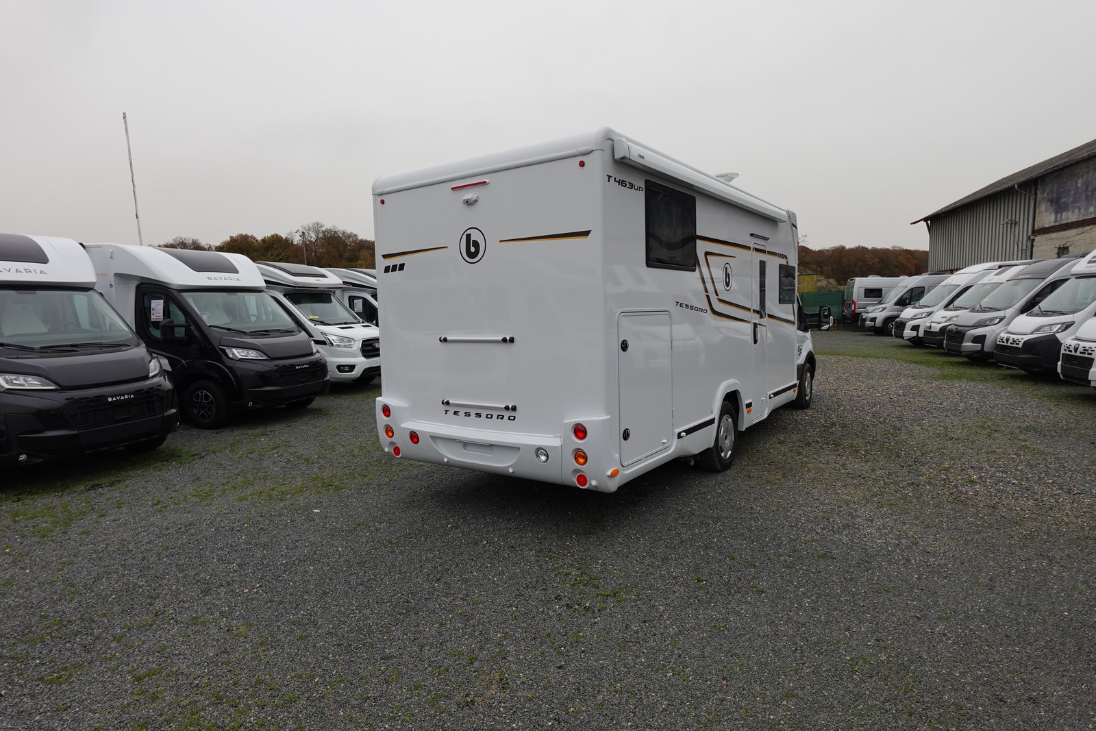Profilé déjà tout équipé et prêt à partir comprenant des lits jumeaux sur soute garage, une douche indépendante de l’espace WC / lavabo, une cuisine en L avec de nombreux rangements, un salon avant panoramique et un lit de pavillon 2 places.