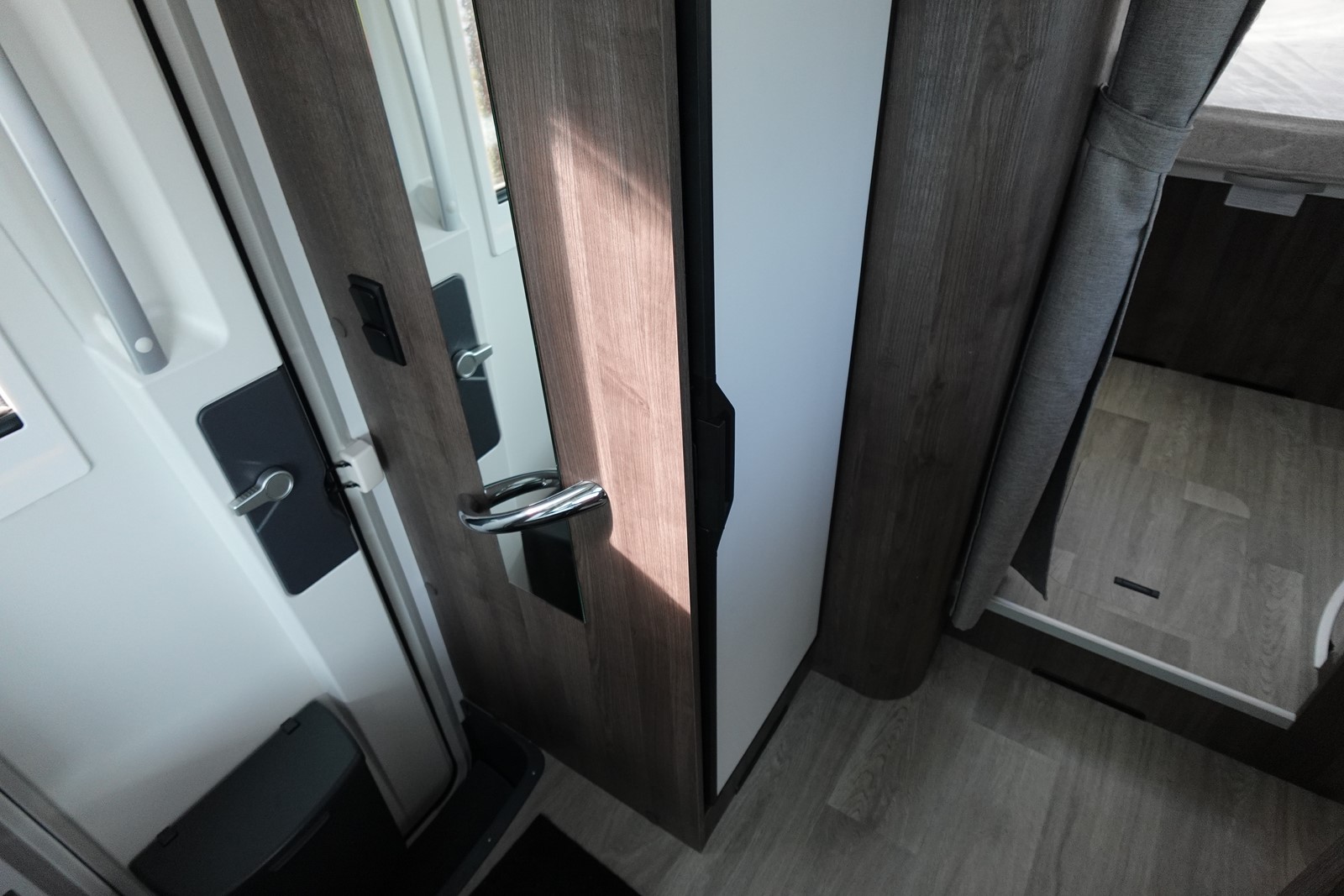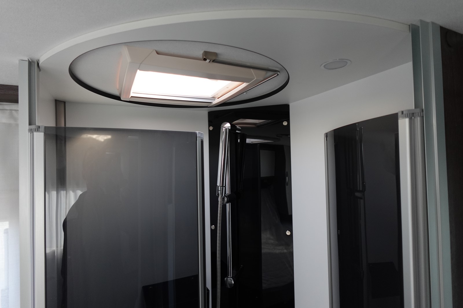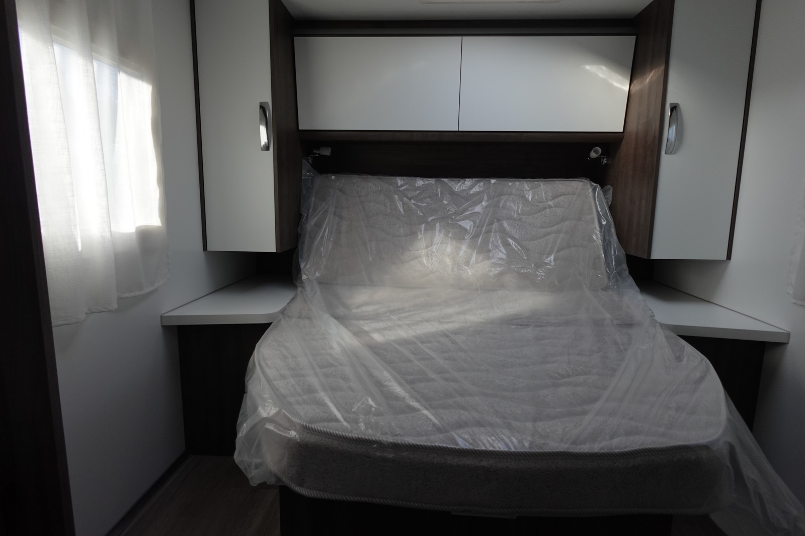 Profilé déjà tout équipé et prêt à partir comprenant un lit central, une douche indépendante de l’espace WC / lavabo, une cuisine en L avec de nombreux rangements, un salon avant panoramique et un lit de pavillon 2 places.