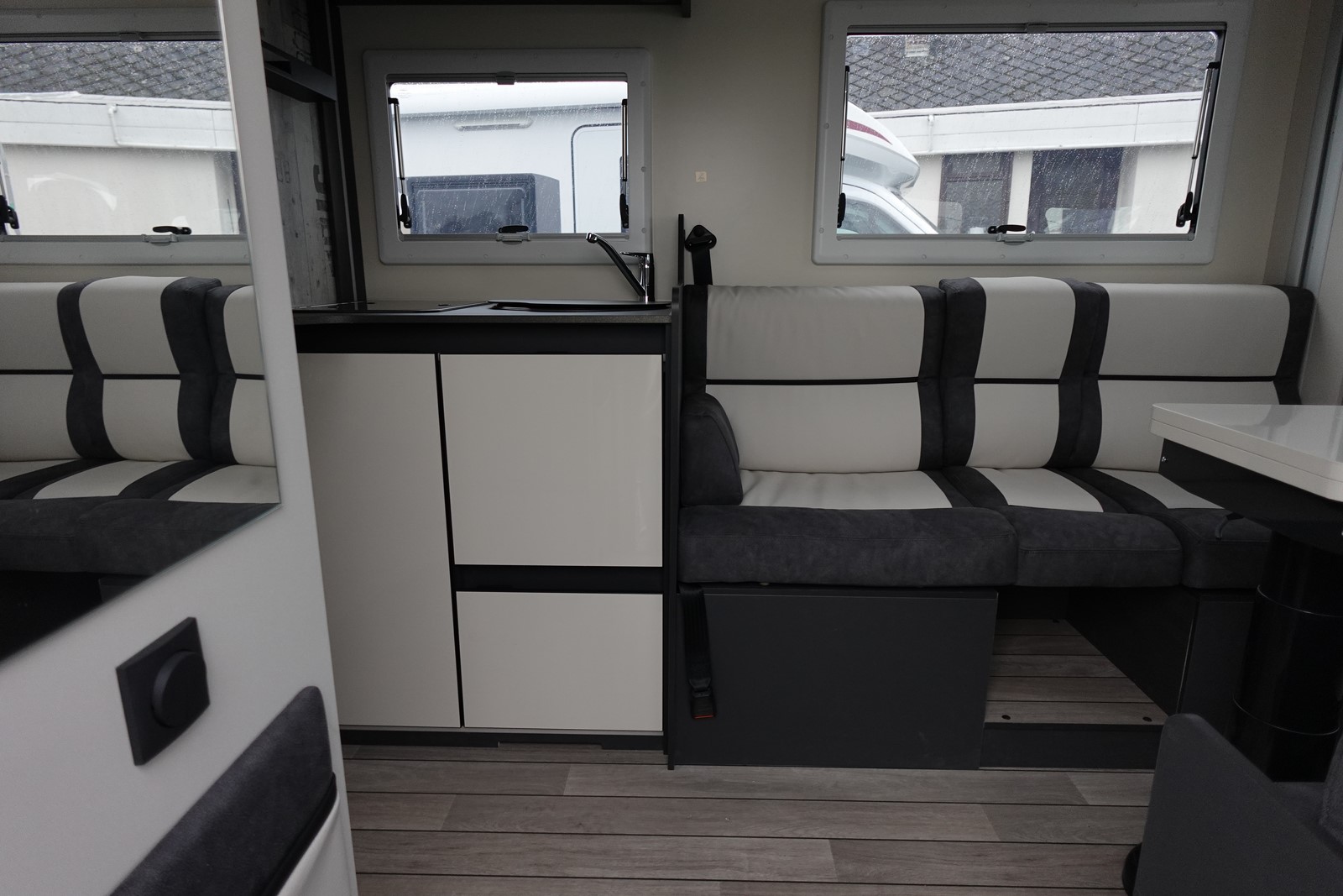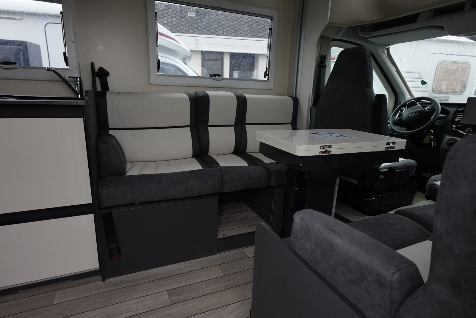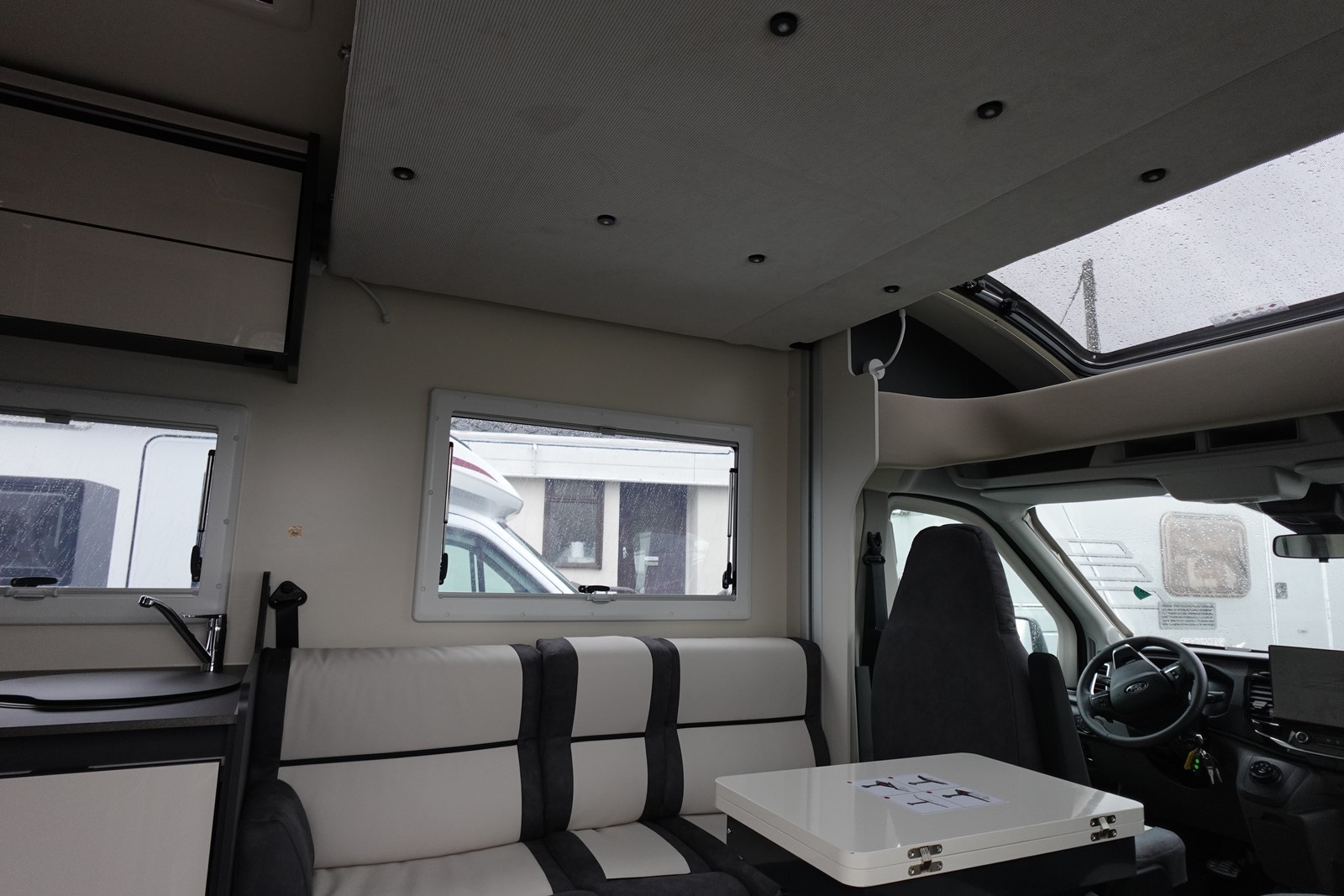 Profilé avec lit de pavillon, grande dinette face à face, salle de bain arrière et garde-robe arrière. L’équilibre parfait entre confort et agilité dimensions réduites par rapport aux véhicules traditionnels, sans renoncer au confort de conduite et à bord. Cuisine légèrement en L pour un espace de vie ouvert et spacieux. Grande surface de travail, plaque de cuisson à 2 feux. Evier à cuve ronde en acier brossé. Maxi toilettes dans la file d’attente avec hublot 28×28. Douche séparée avec portes rigides.
