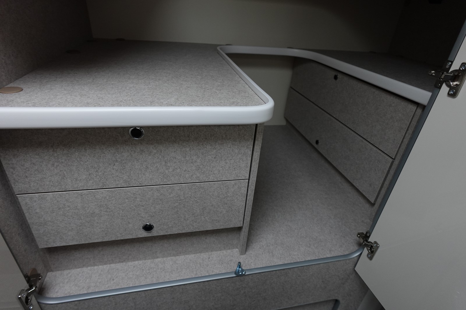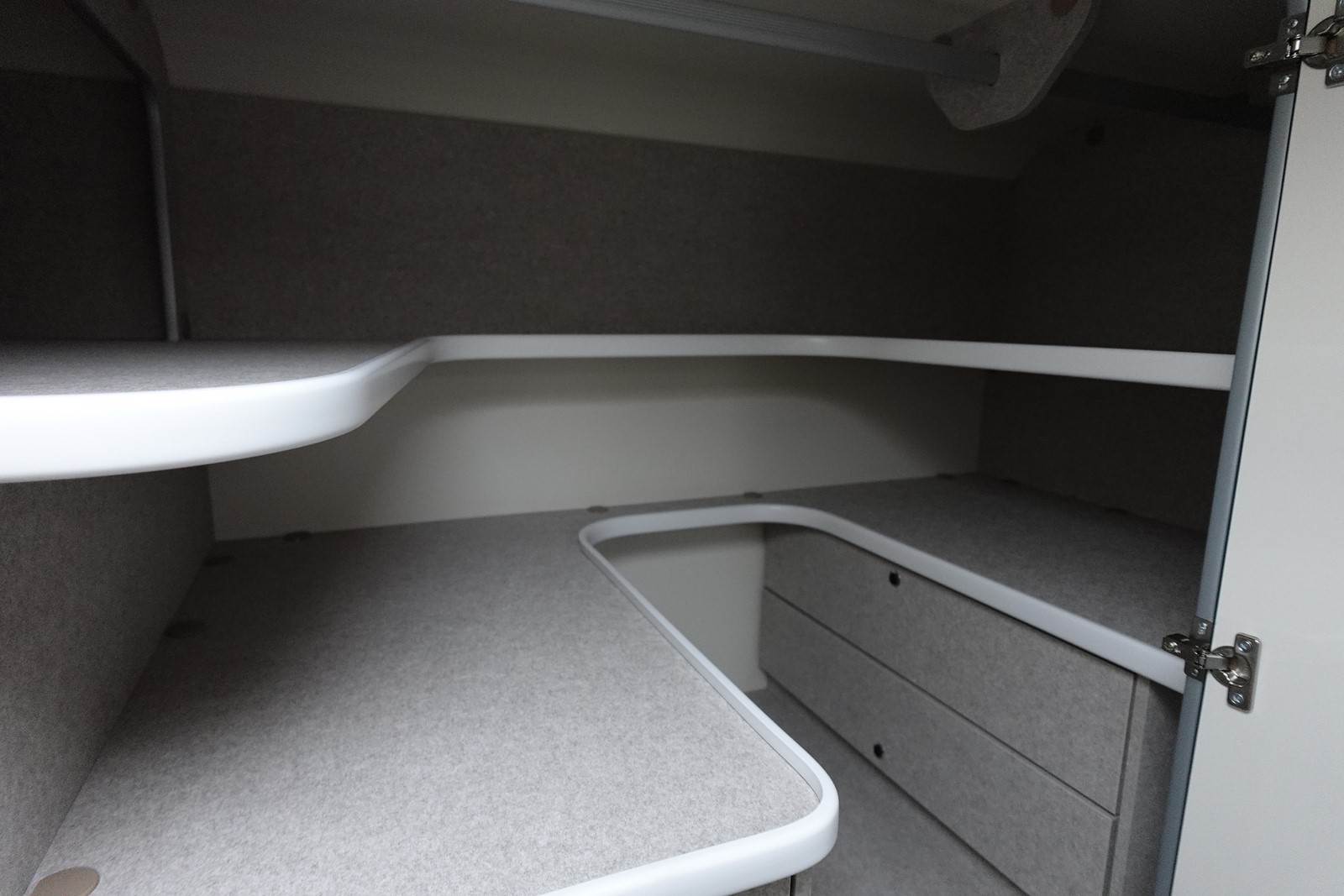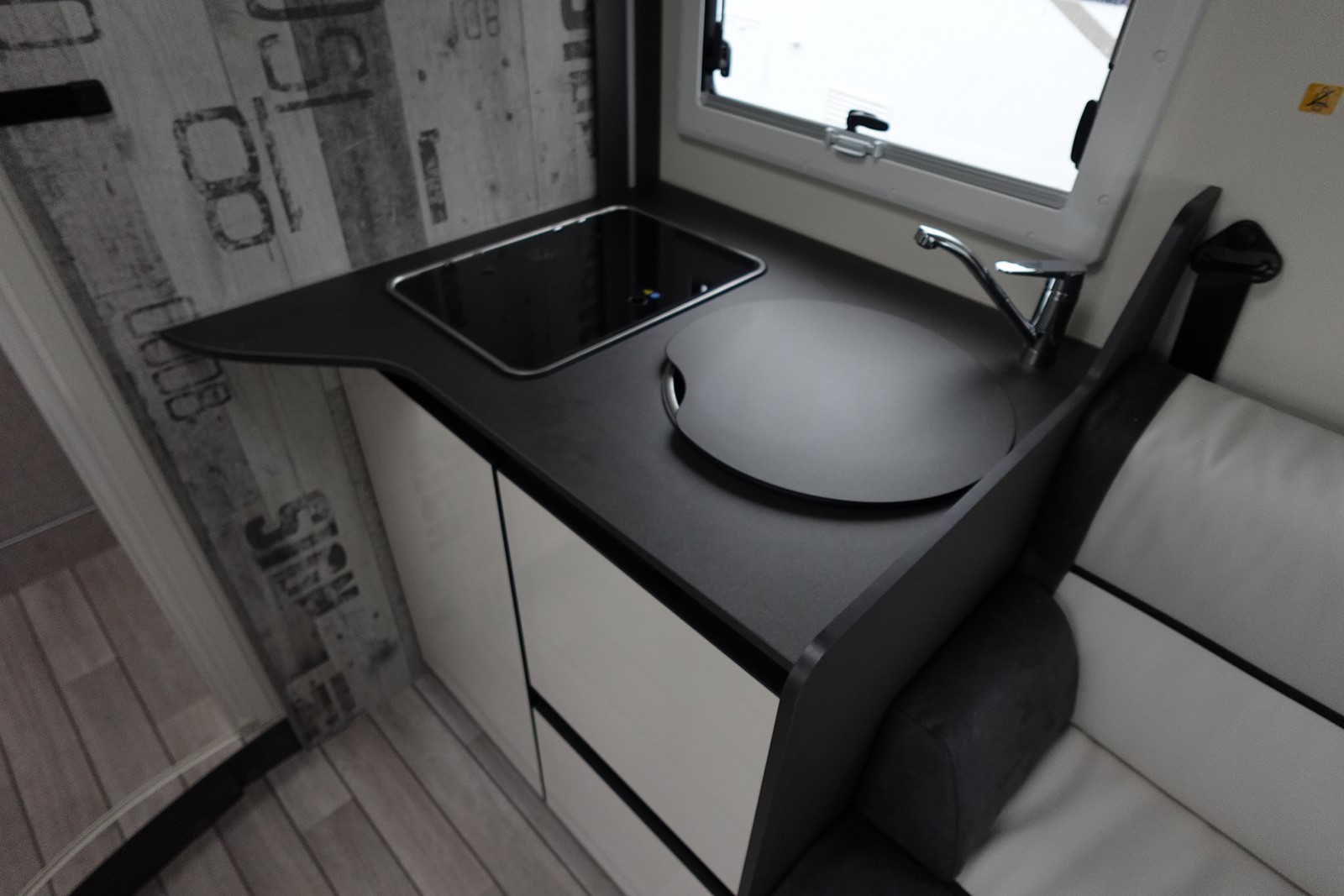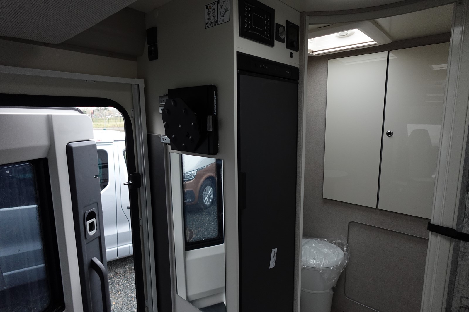 Profilé avec lit de pavillon, grande dinette face à face, salle de bain arrière et garde-robe arrière. L’équilibre parfait entre confort et agilité dimensions réduites par rapport aux véhicules traditionnels, sans renoncer au confort de conduite et à bord. Cuisine légèrement en L pour un espace de vie ouvert et spacieux. Grande surface de travail, plaque de cuisson à 2 feux. Evier à cuve ronde en acier brossé. Maxi toilettes dans la file d’attente avec hublot 28×28. Douche séparée avec portes rigides.