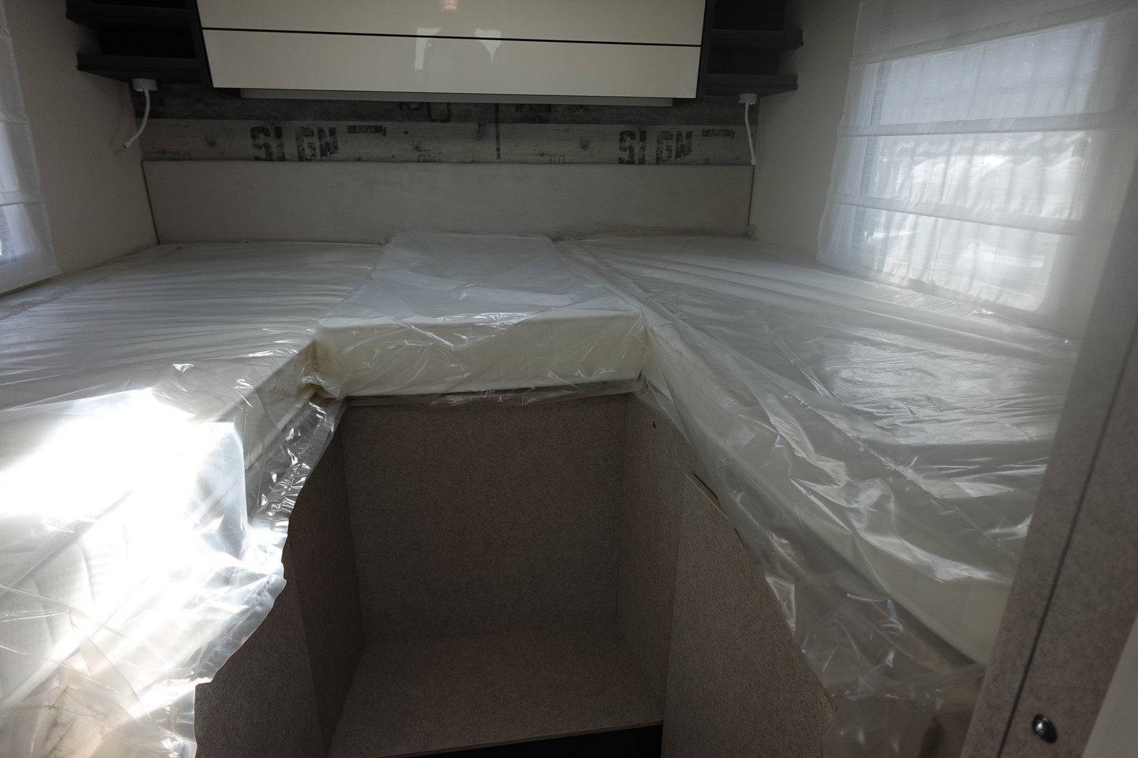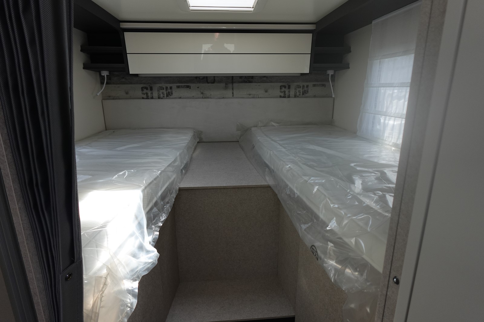 Magnifique profilé en série limitée avec un lit de pavillon, des lits jumeaux à l’arrière, une salle de bains avec douche indépendante, une cuisine comprenant de nombreux rangements et une dînette avec banquettes face-à-face et sa table pliante pivotante à 360°.