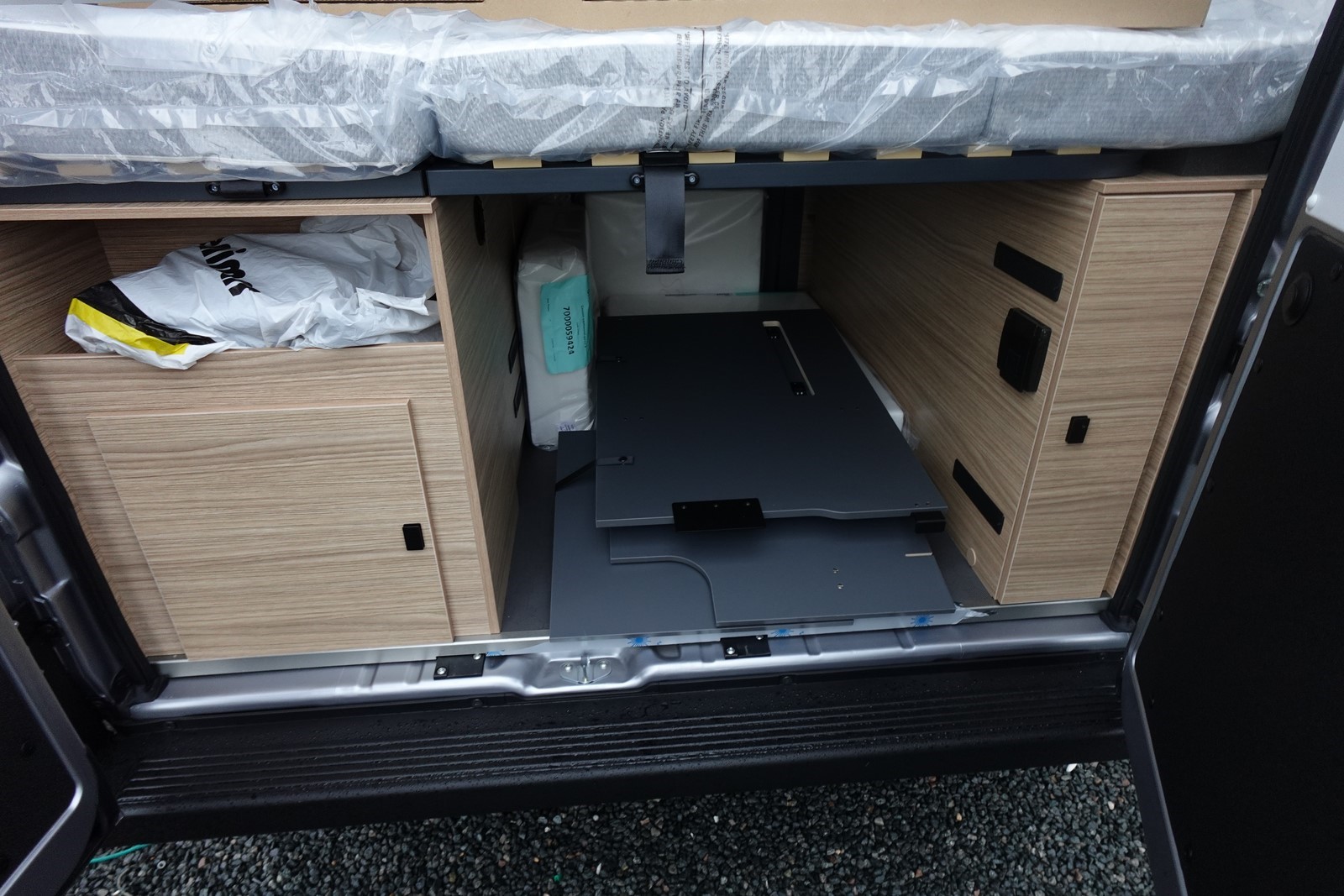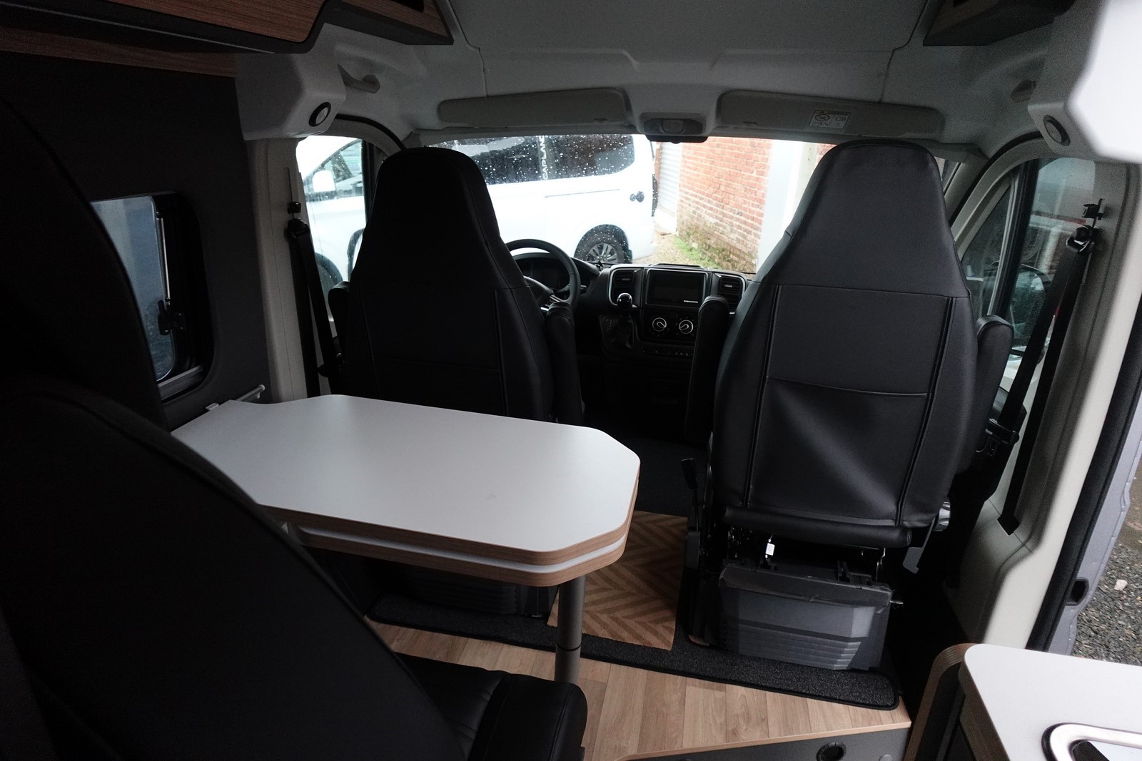 Le fourgon aménagé Bavaria K600G offre une cuisine fonctionnelle avec cinq tiroirs compartimentés et une poubelle intégrée, permettant un rangement organisé et pratique. Son grand salon peut accueillir confortablement jusqu'à quatre personnes, offrant un espace convivial pour se détendre et socialiser. De plus, l'espace douche est spacieux, offrant confort et commodité lors de l'hygiène quotidienne. Enfin, le lit garage est équipé d'un matelas confortable et d'un sommier à lattes, assurant un repos réparateur pour une bonne nuit de sommeil.