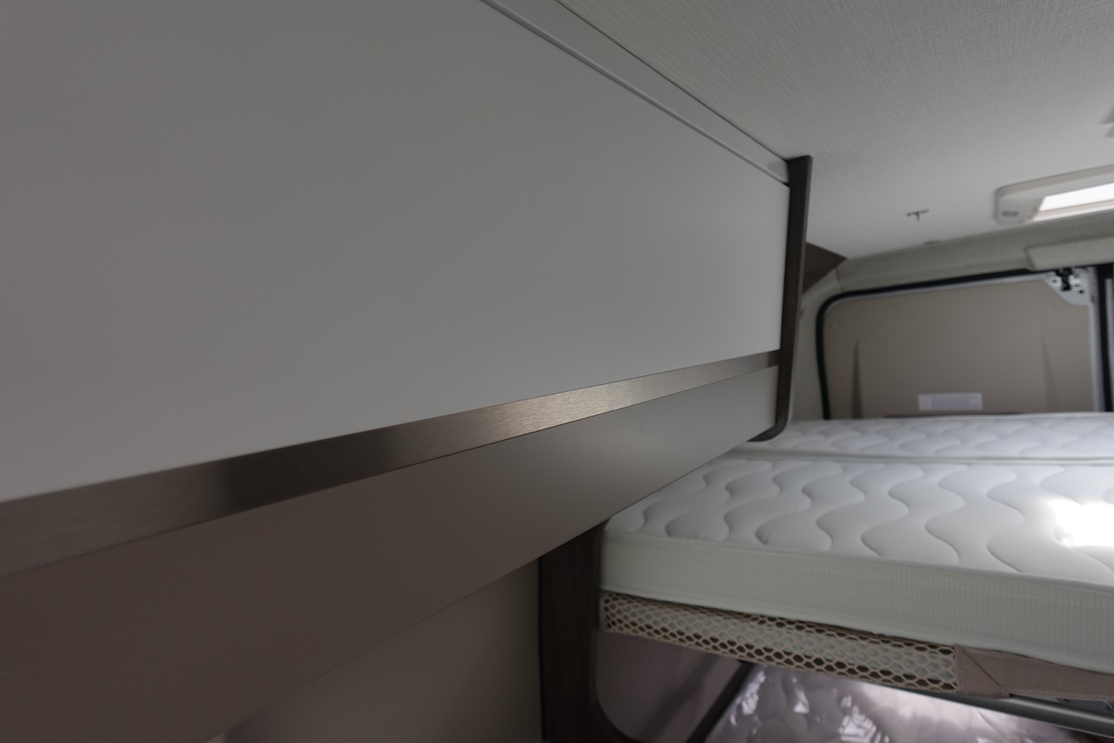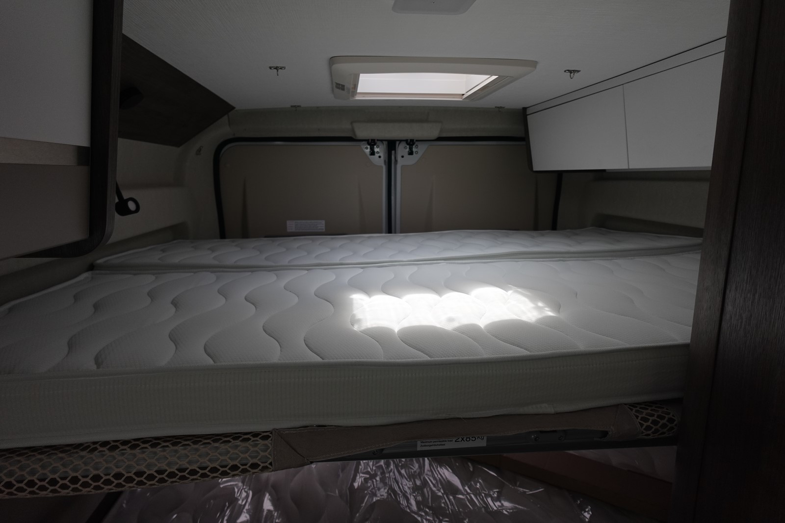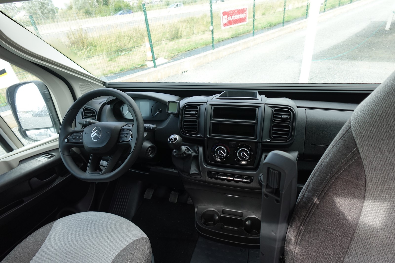 Fourgon aménagé familial comprenant un salon avant panoramique, une salle d’eau avec douche, 2 lits arrière 2 places superposés et amovibles et une cuisine avec de nombreux rangement.