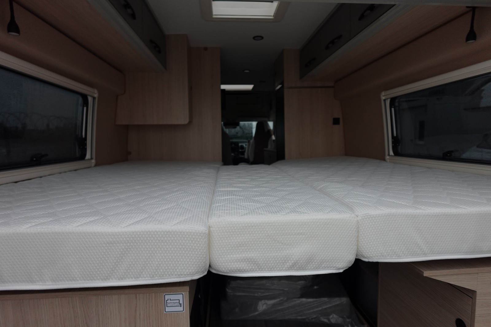 Grace à son lit jumeau King Size, sa belle douche modulable, son maxi frigo à compression et son spacieux salon dans un seul et même espace compact, le R 640 réunit les avantages d’un camping-car dans 6.36m pour vous transporter en France et dans le monde été comme hiver.